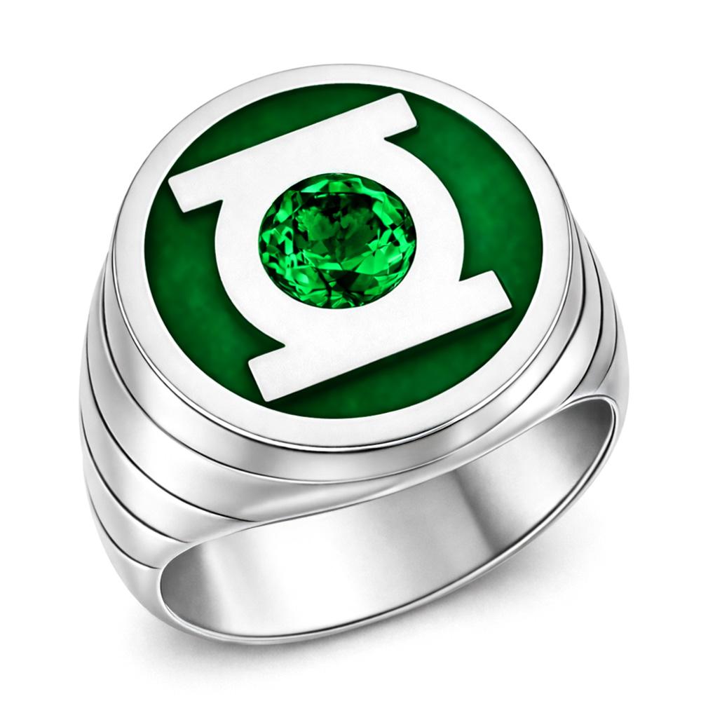 Ultimate Green Lantern Inspired Silver Ring with a green color lab diamond in the center of the GL symbol and green enamel around the symbol. It's the best-looking Green Lantern Inspired Ring on the Internet. Made from Solid 925 Sterling Silver. (It's real solid silver and plated with black color)