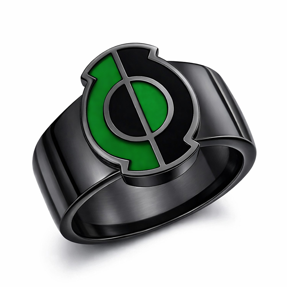 This is a unique Green Lantern Inspired Kyle Rayner Style Power Ring. It's the best-looking Green Lantern Inspired Ring on Internet. Made from Solid .925 Sterling Silver. (It's real solid silver, plated with black and enameled green)
